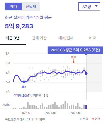 - - 2025년 6월 기준 84㎡ 실거래 5.8~6.2억