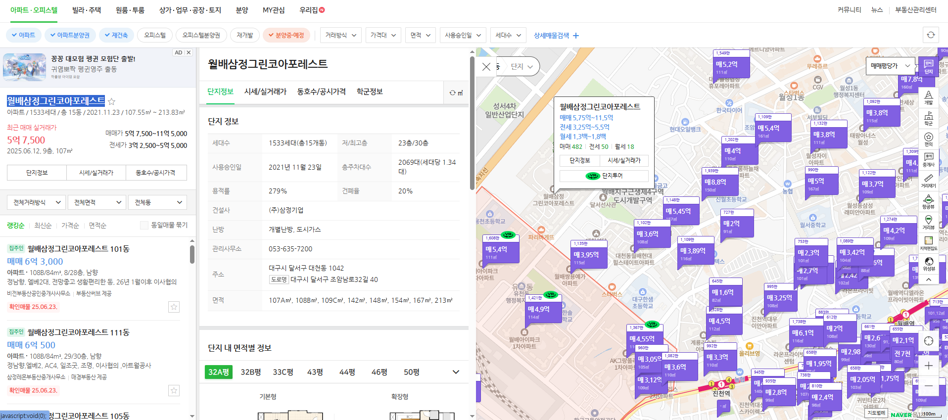 대구 달서구 월배삼정그린코아포레스트 - 2025년 최신 시세와 투자포인트