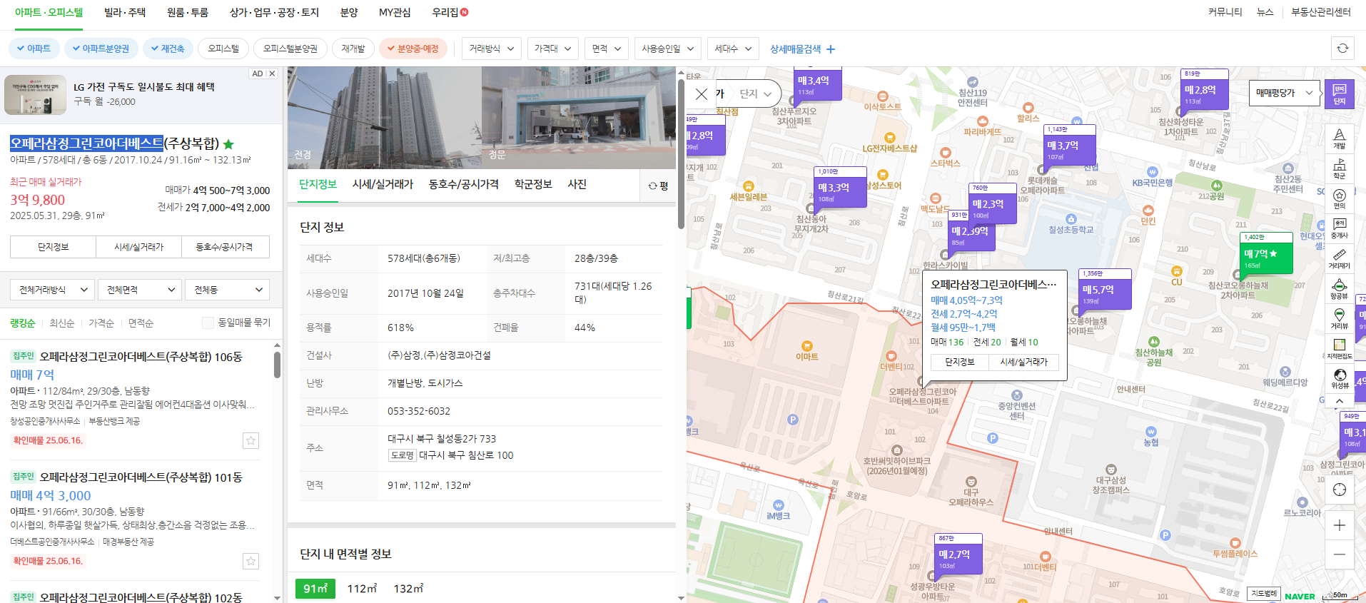 대구 북구 오페라삼정그린코아더베스트 - 2025년 최신 시세와 투자포인트 완벽 정리
