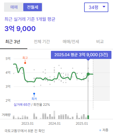 - 84㎡ 전세가: 3억 3,000만원~4억 5,000만원