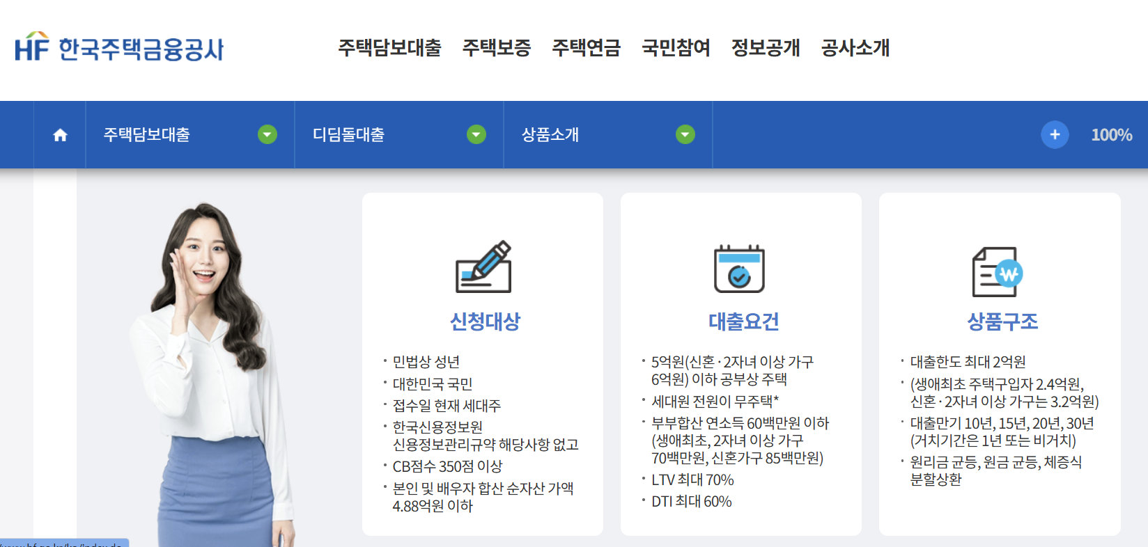 - 주택 가격: 대출 대상 주택 가격에도 상한선(지역별 6억~9억 원 이하)이 존재.