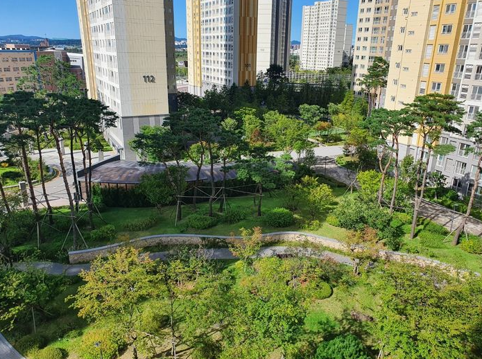 건폐율이 13%로 매우 낮아 동간 거리가 넓고, 단지 내 조경이 압도적으로 훌륭하다는 것도 큰 장점입니다.