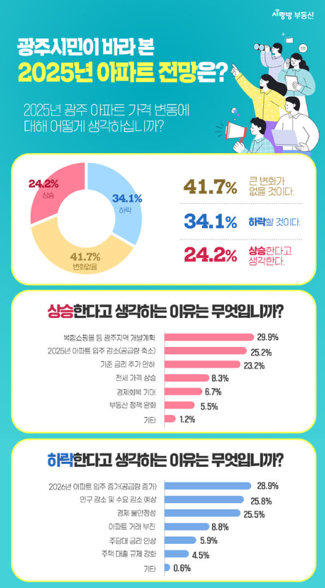 - 입주 물량 감소: 2025년 광주 지역의 아파트 입주 예정 물량이 전년 대비 약 36% 감소했습니다. 이는 공급 부족으로 이어져 가격 상승 요인으로 작용할 수 있습니다.