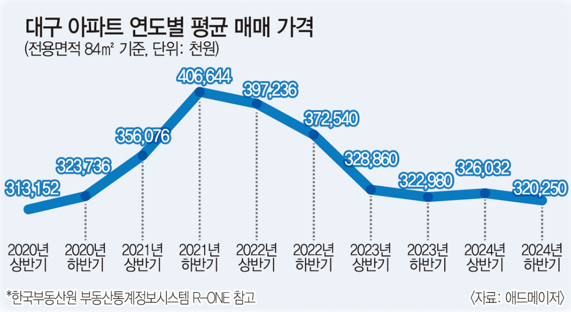 2025년 2월 현재, 대구 부동산 시장은 장기 하락세에서 벗어나 회복의 조짐을 보이고 있습니다. 한국부동산원 자료에 따르면, 대구 아파트 매매가격은 66주 연속 하락세를 보이고 있지만, 일부 대장 아파트를 중심으로 가격 회복의 움직임이 감지되고 있습니다.
