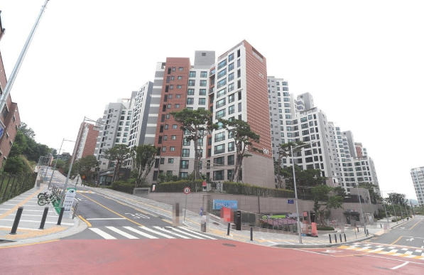 다만, 경사로 인한 불편함과 역까지의 거리에 대한 아쉬움을 표현하는 의견도 있습니다. 또한 단지 내 동 간 간격이 다소 좁아 프라이버시 측면에서 아쉽다는 의견도 있습니다.