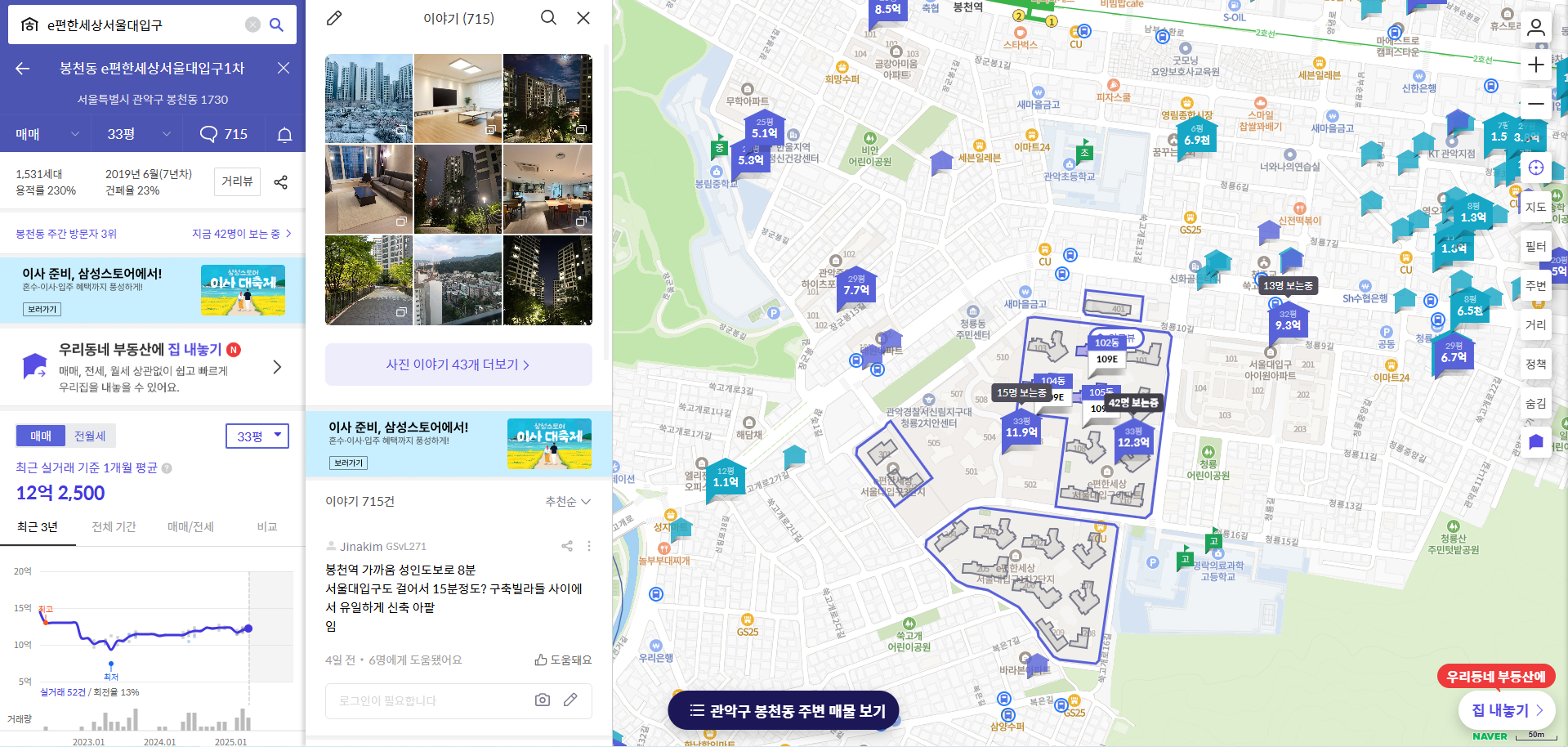 2025년 3월 기준, e편한세상 서울대입구의 시세를 평형별로 정리해보았습니다. 최근 실거래가와 호가를 바탕으로 분석했습니다. 📊